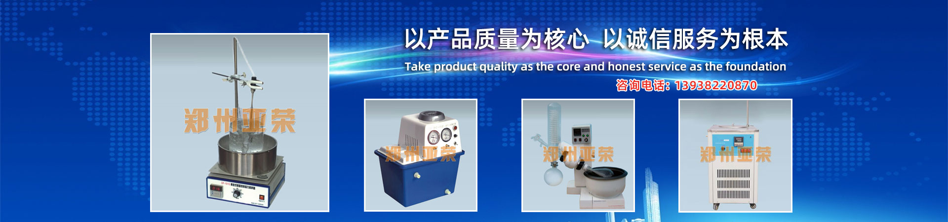 鄭州市亞榮儀器有限公司是主要銷售教學儀器的專業廠家,主要生產旋轉蒸發儀雙層玻璃反應釜旋轉蒸發器、循環水真空泵、玻璃儀器氣流烘干器低溫冷卻液循環泵真空抽濾器電熱鼓風干燥箱、真空干燥箱、水熱合成反應釜、高壓反應釜、數顯恒溫電熱套、高溫油浴鍋、磁力攪拌器、超聲波清洗器、水(油)浴鍋、冷凍干燥機、智能玻璃恒溫水浴、水槽,臺式高速離心機、紫外分析儀、控溫儀、振蕩器、微波化學反應器、顯微熔點測定儀、聚四氟乙烯攪拌棒、攪拌塞、攪拌子、升降臺等多種型號的教學儀器。